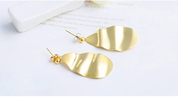 3、片状耳饰,片状镀金耳环,与环状耳饰相比,反射面积大,光泽度也高,吸睛度自然没得说,而且比较大,大气,适合气场强的穿搭。