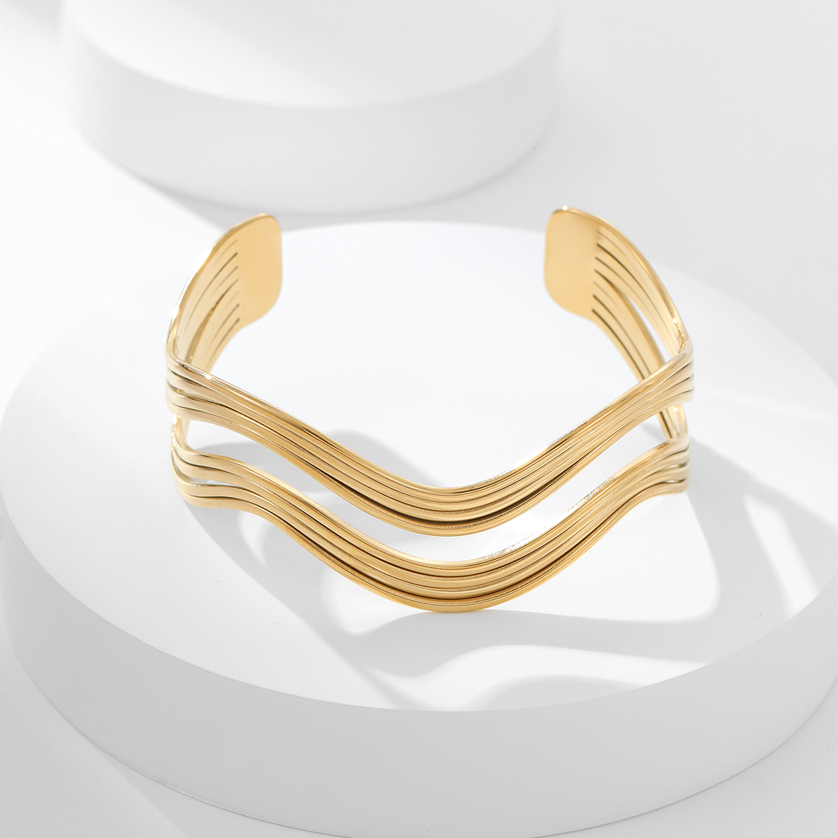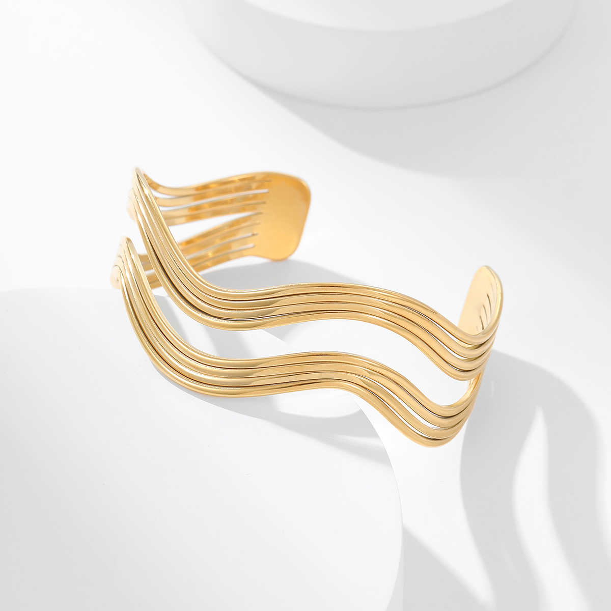 "简约防水珠宝宽空心波浪手链"