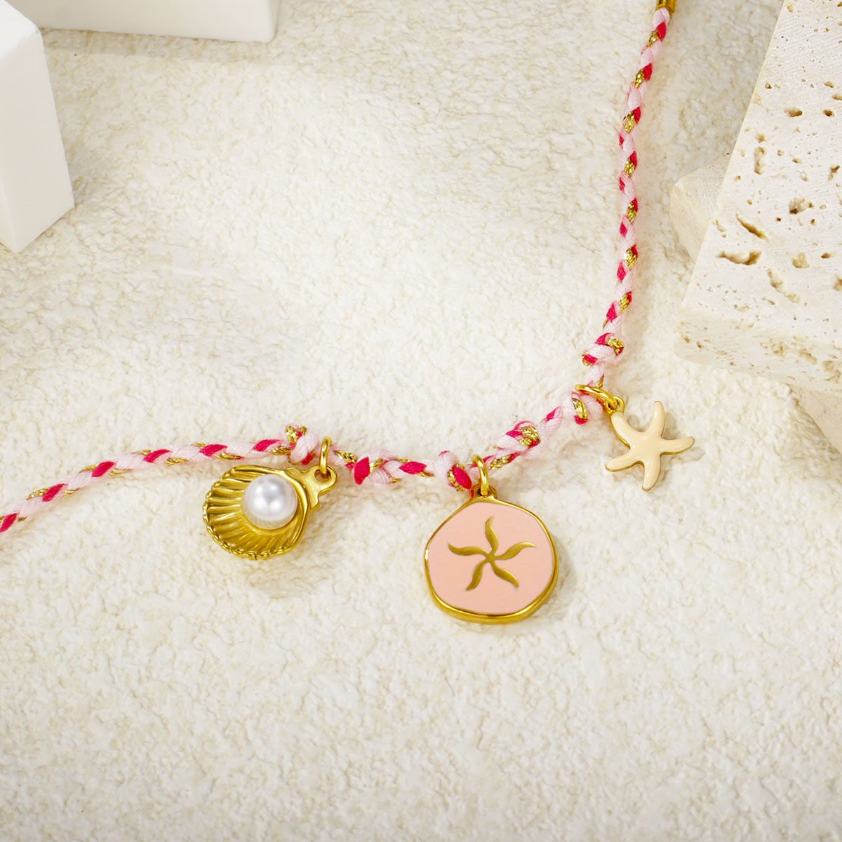 女士时尚18K镀金扇贝吊坠手链彩色绳编