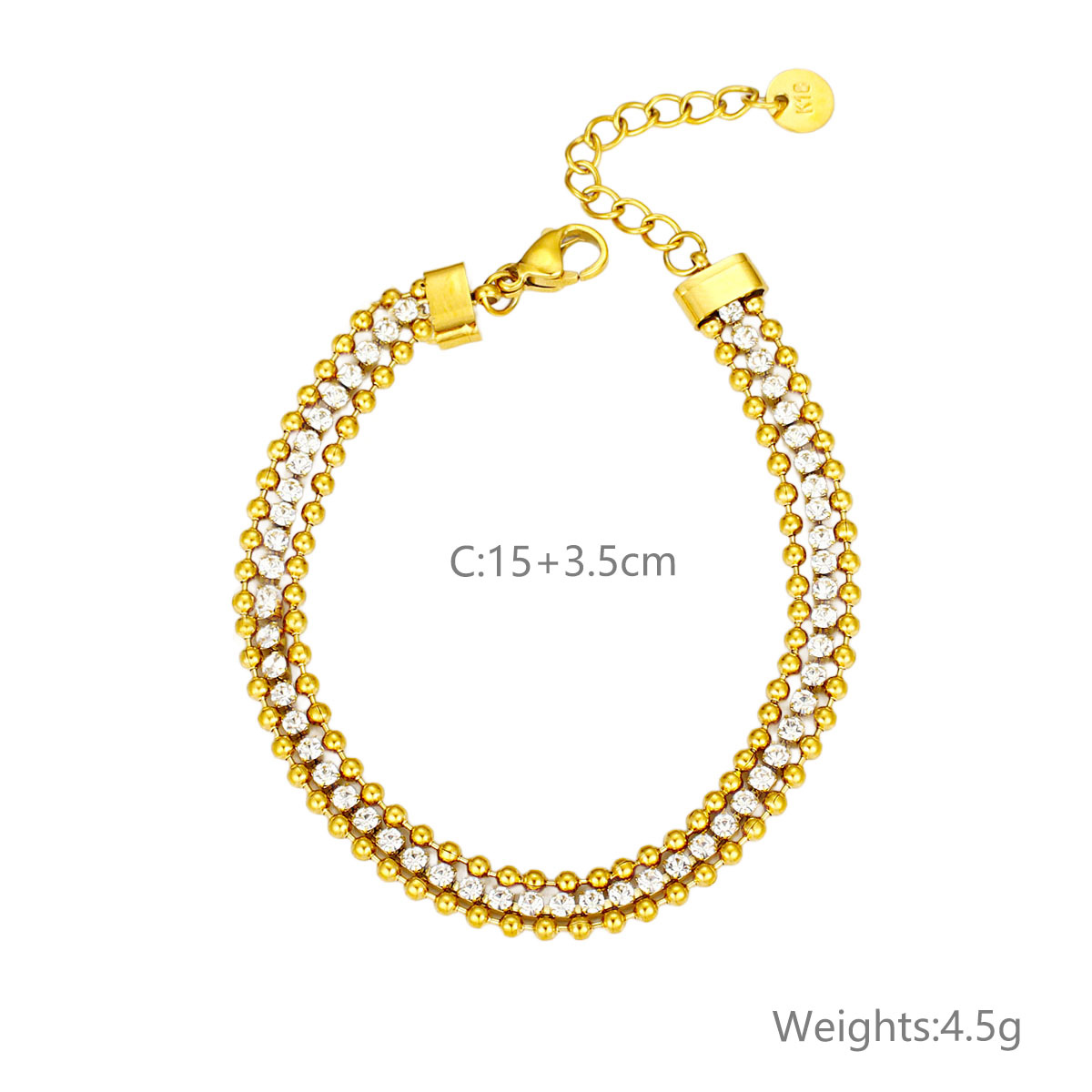 "水晶镶嵌首饰 18K PVD镀金不规则纹理防水手镯"