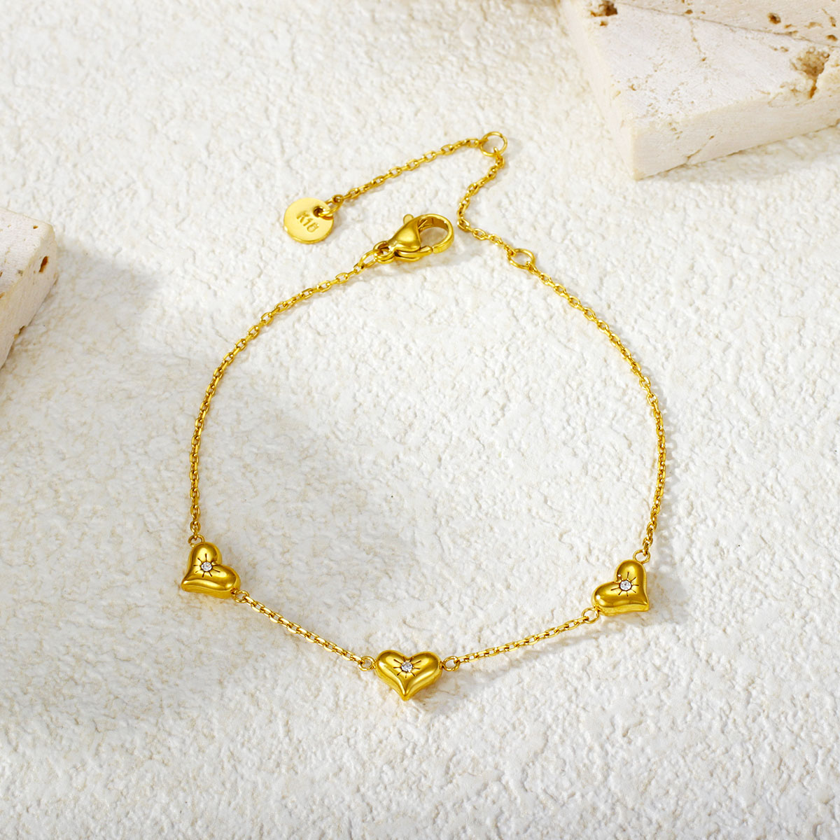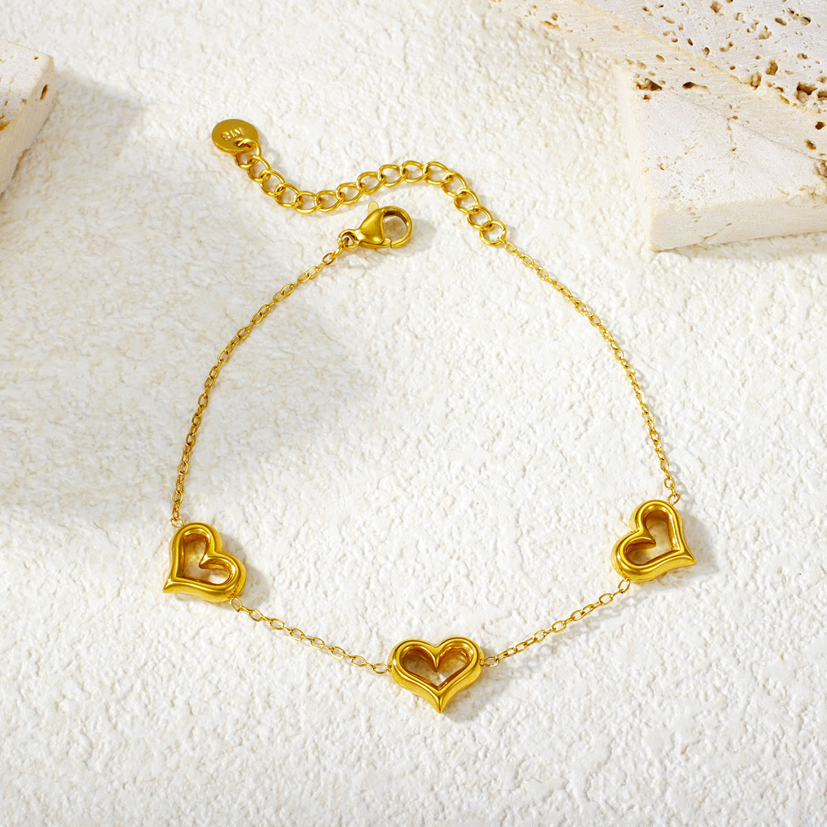 "批发镂空心形手链 18k镀金不锈钢桃心女士珠宝"