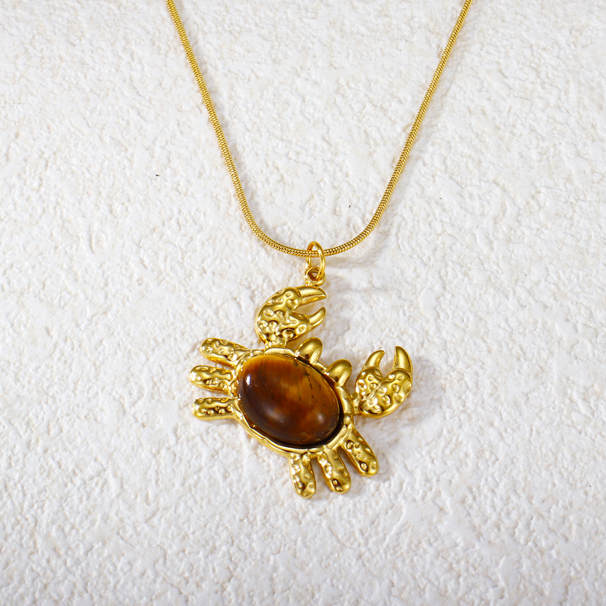 "可爱螃蟹猫眼石吊坠项链珠宝"