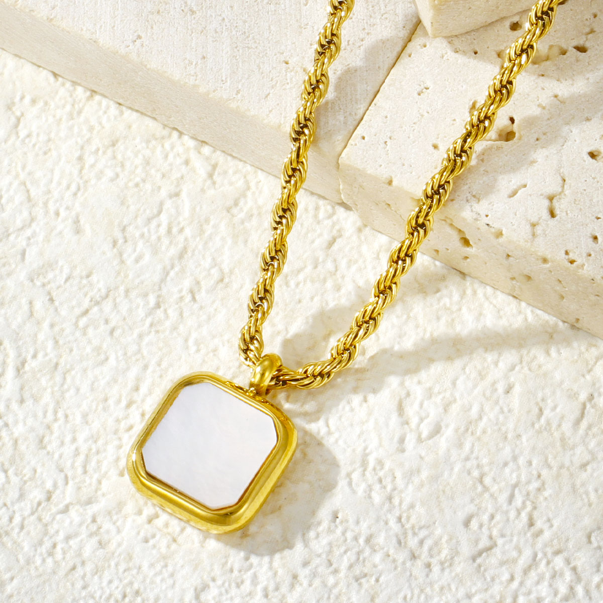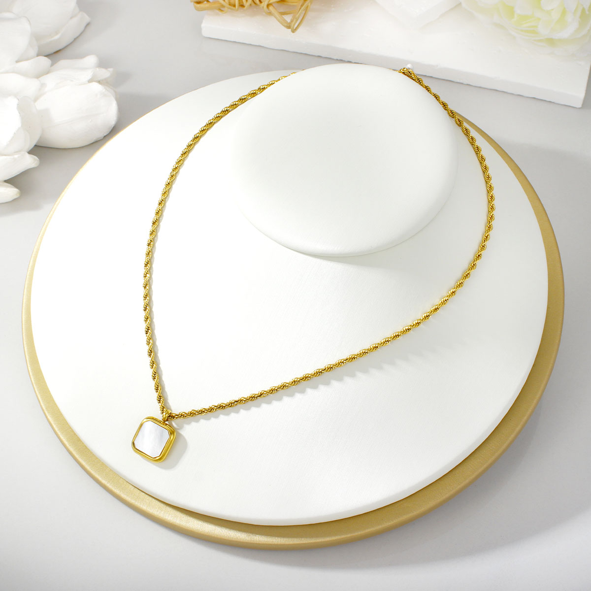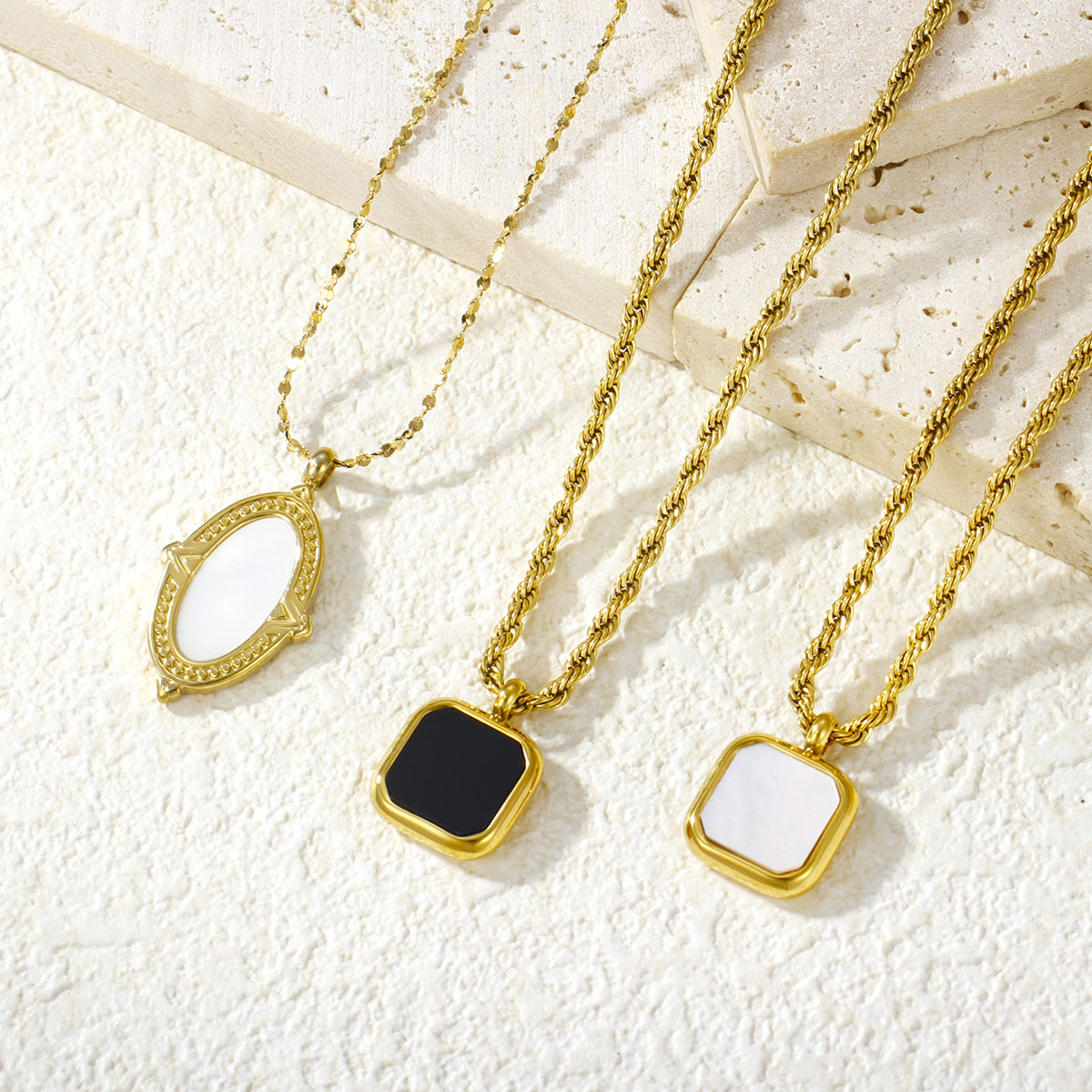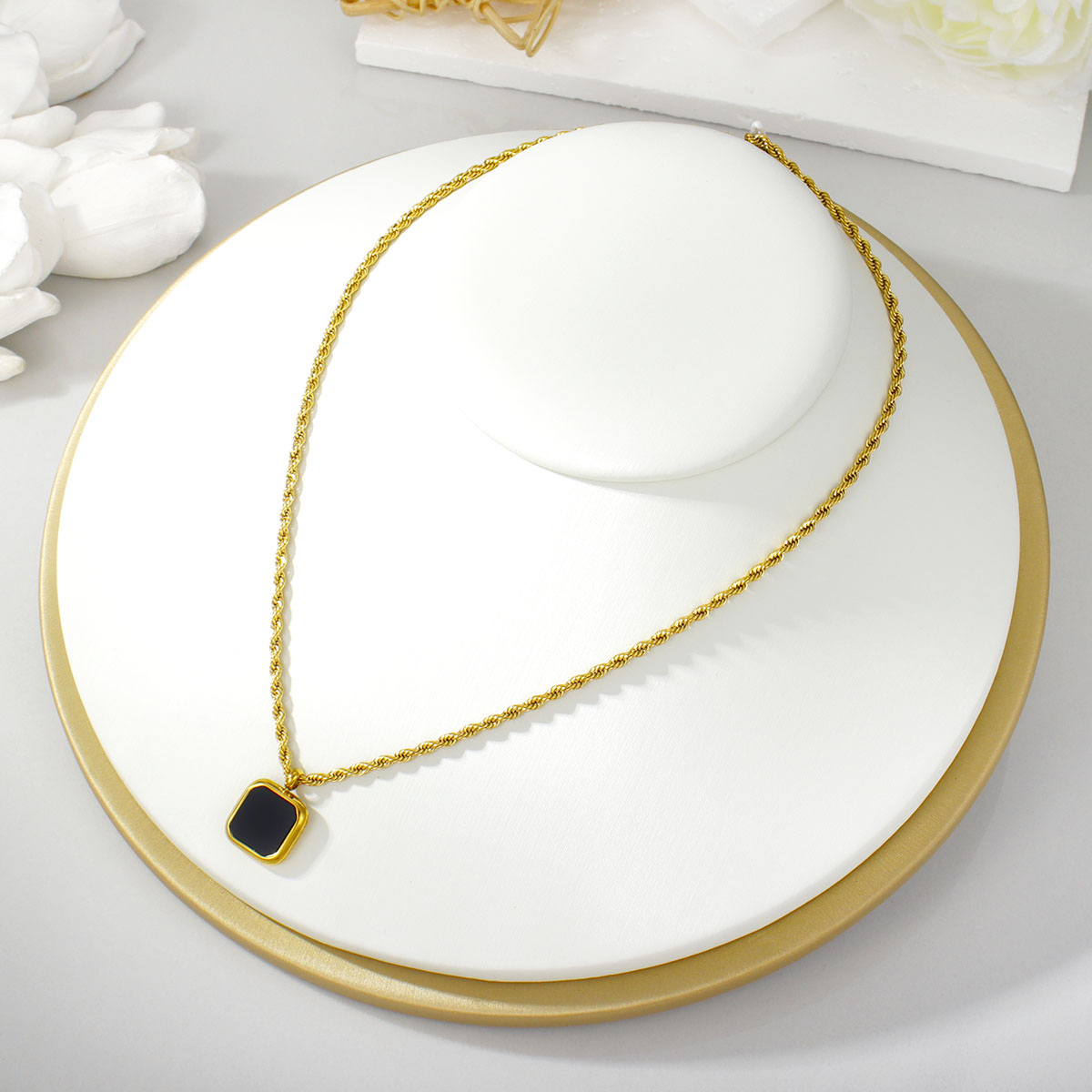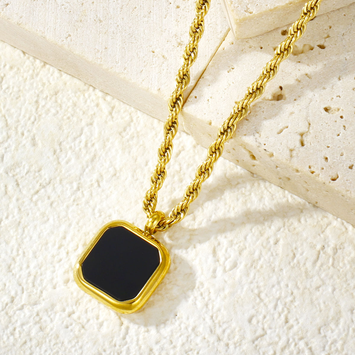 "18K金不锈钢绳链方形黑玛瑙石项链"