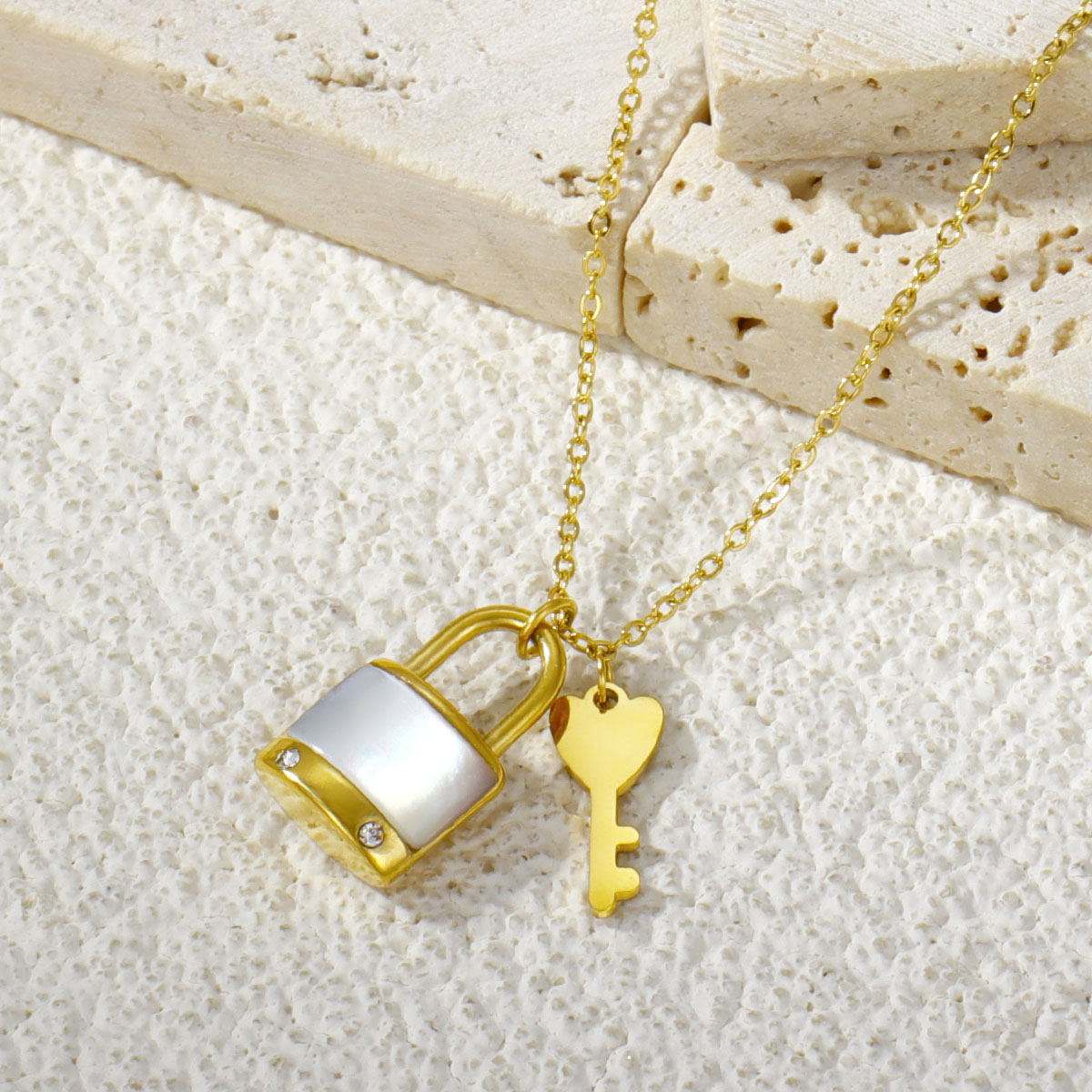 不锈钢锁骨链项链镶满钻石的贝壳钥匙吊坠