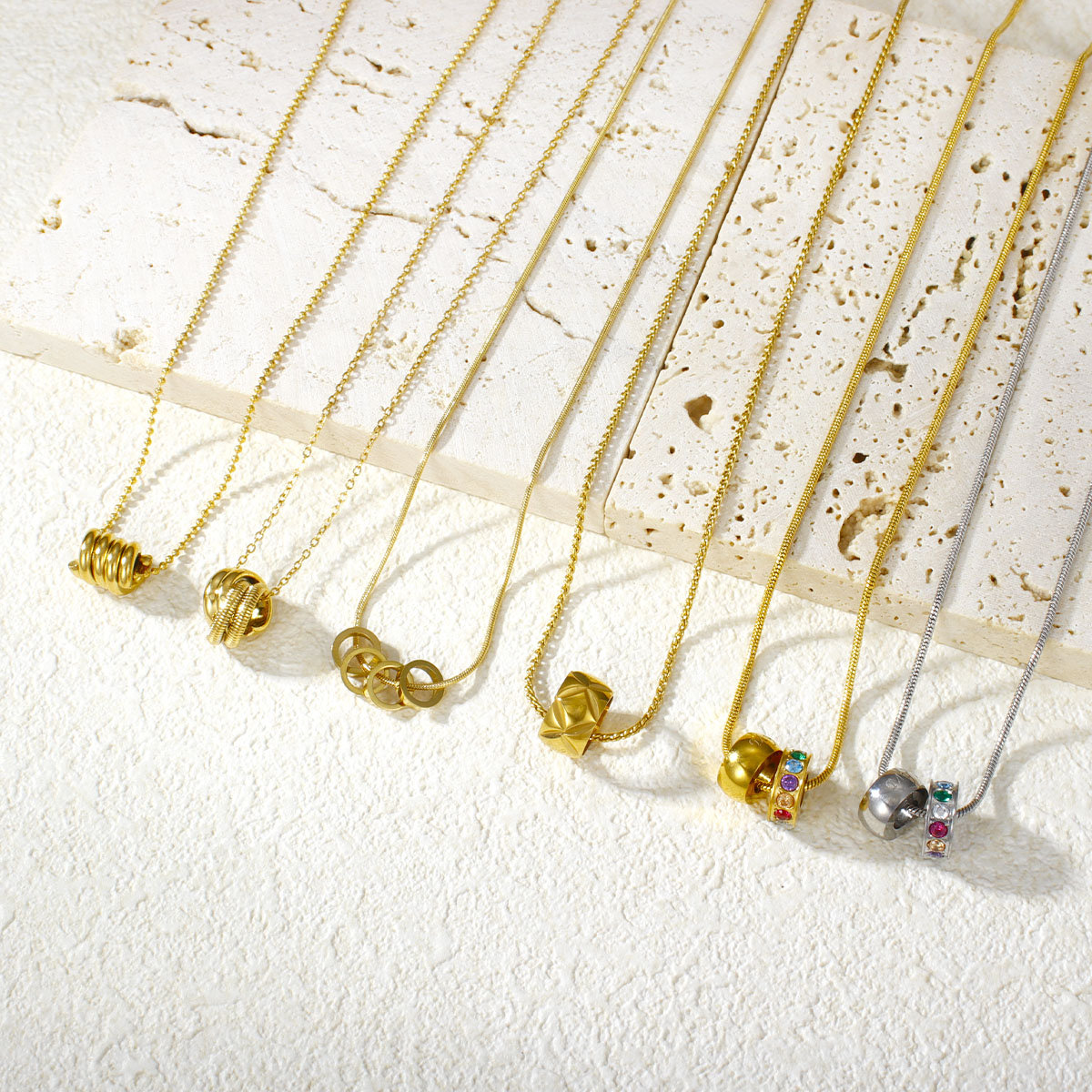 时尚18K镀金不锈钢细链椭圆形绿蓝色天然石吊坠项链