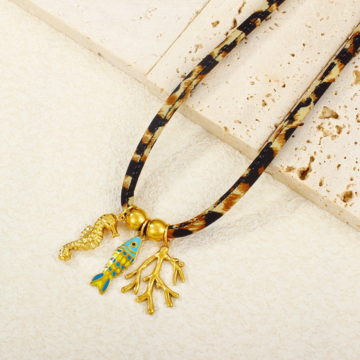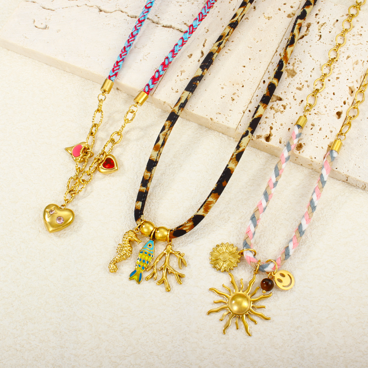 "18K镀金PVD不锈钢链条拼接项链,防水太阳雏菊花朵"