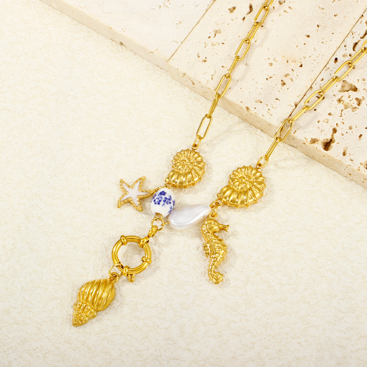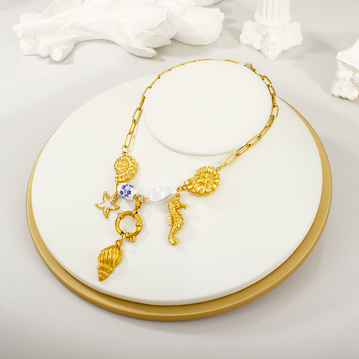 "女士复古链条设计不锈钢多元素心形吊坠项链"