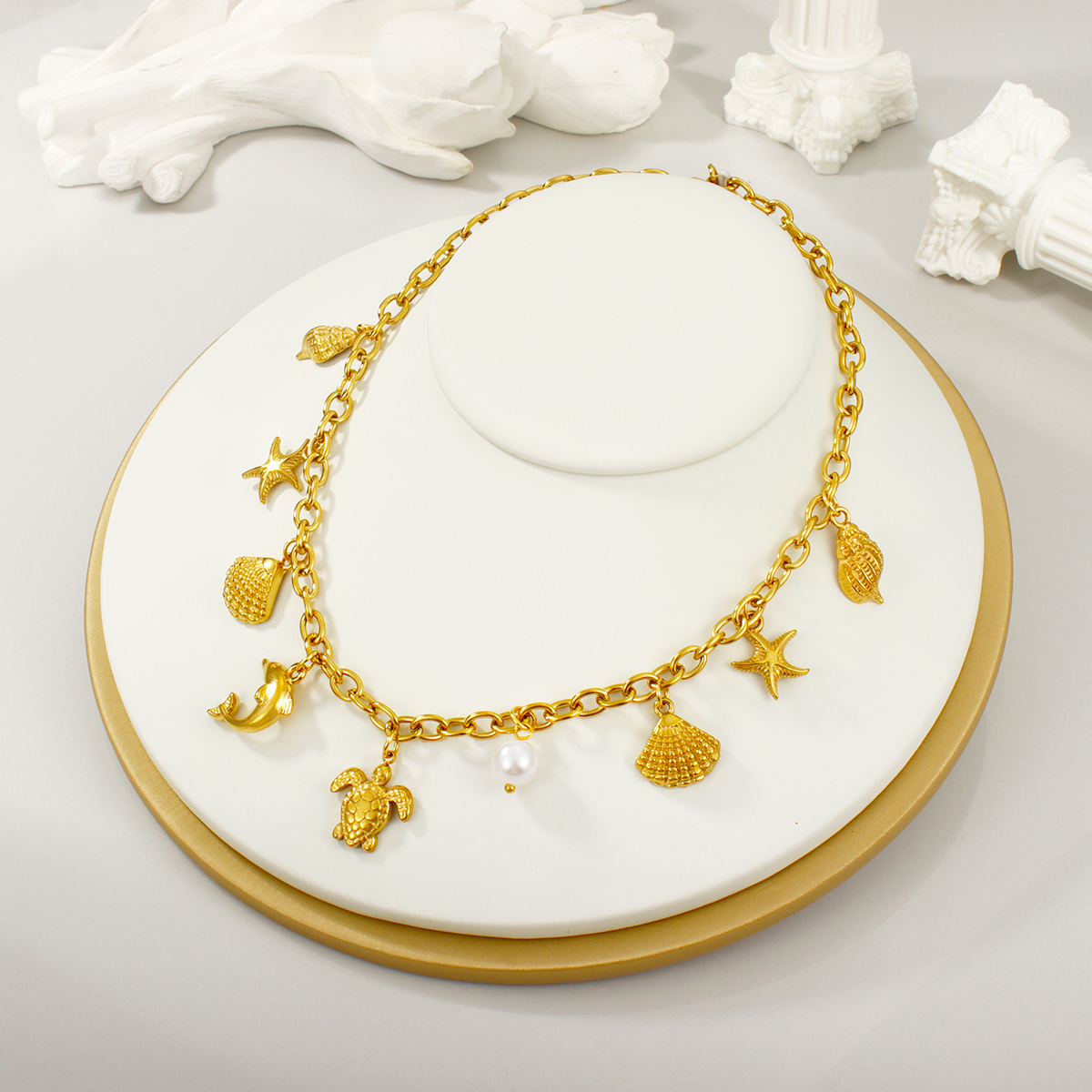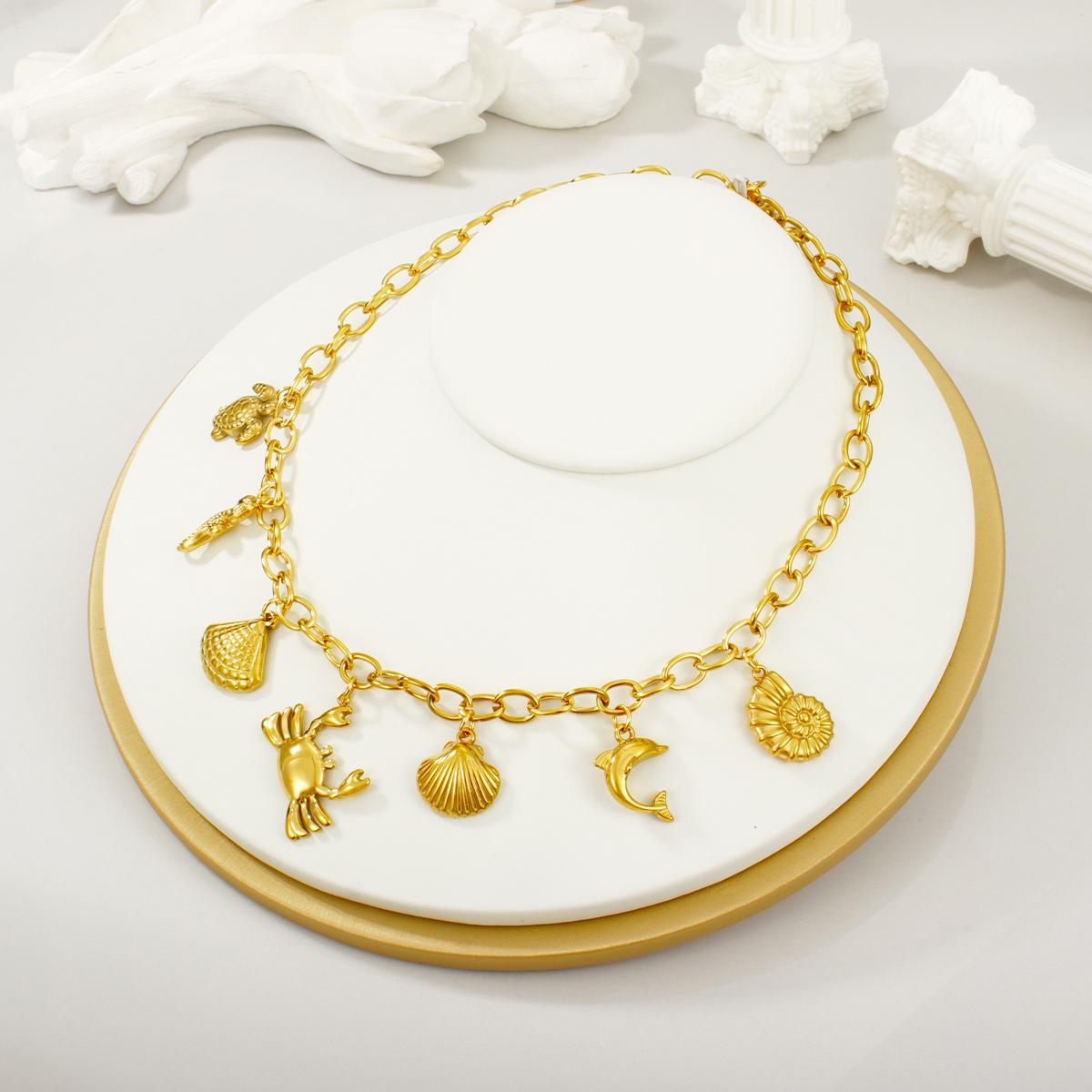 女士复古链条设计不锈钢多元素心形吊坠项链