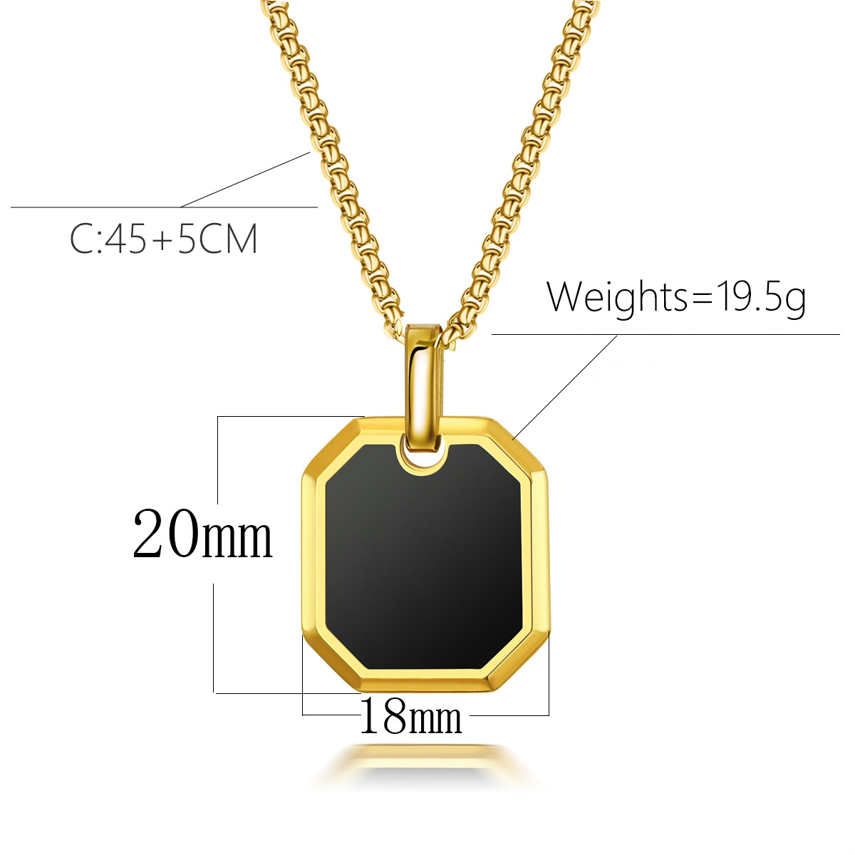 "18K镀金不锈钢男士项链方形珍珠链油滴方形吊坠时"