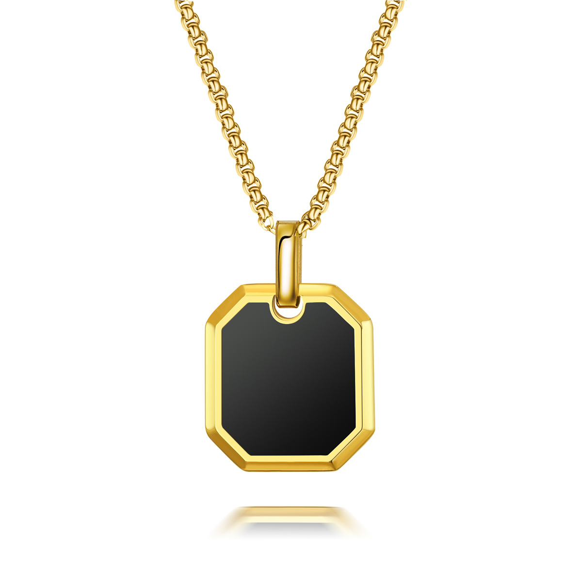 18K镀金不锈钢男士项链方形珍珠链油滴方形吊坠时