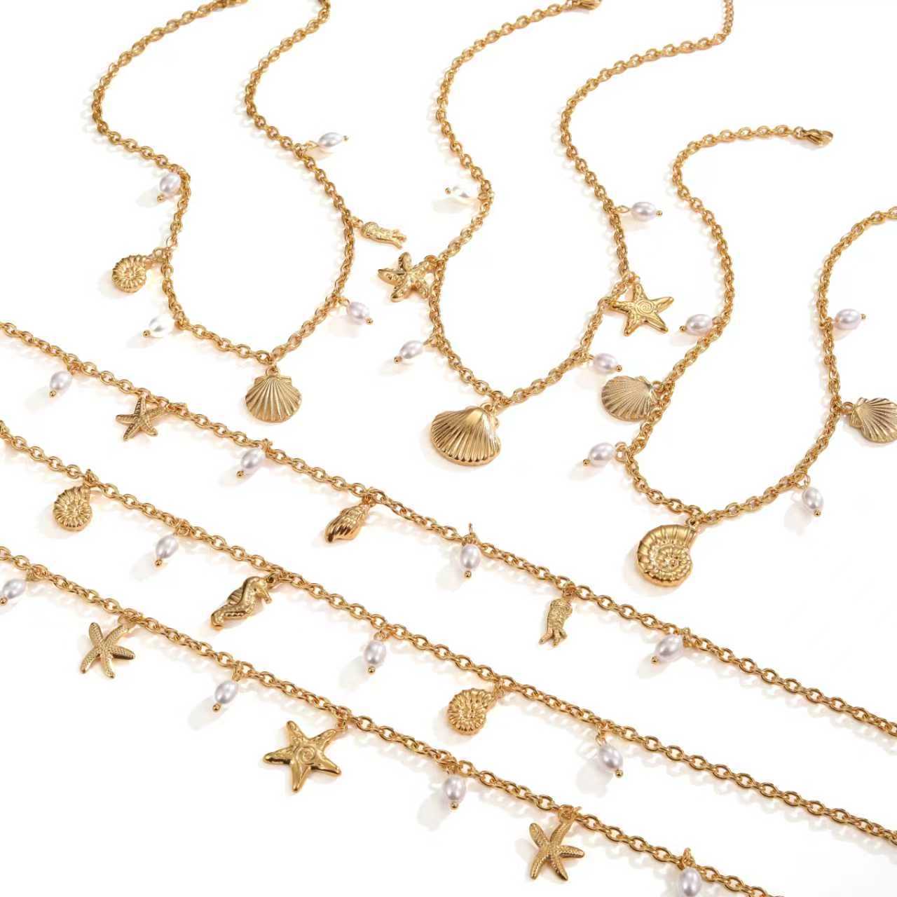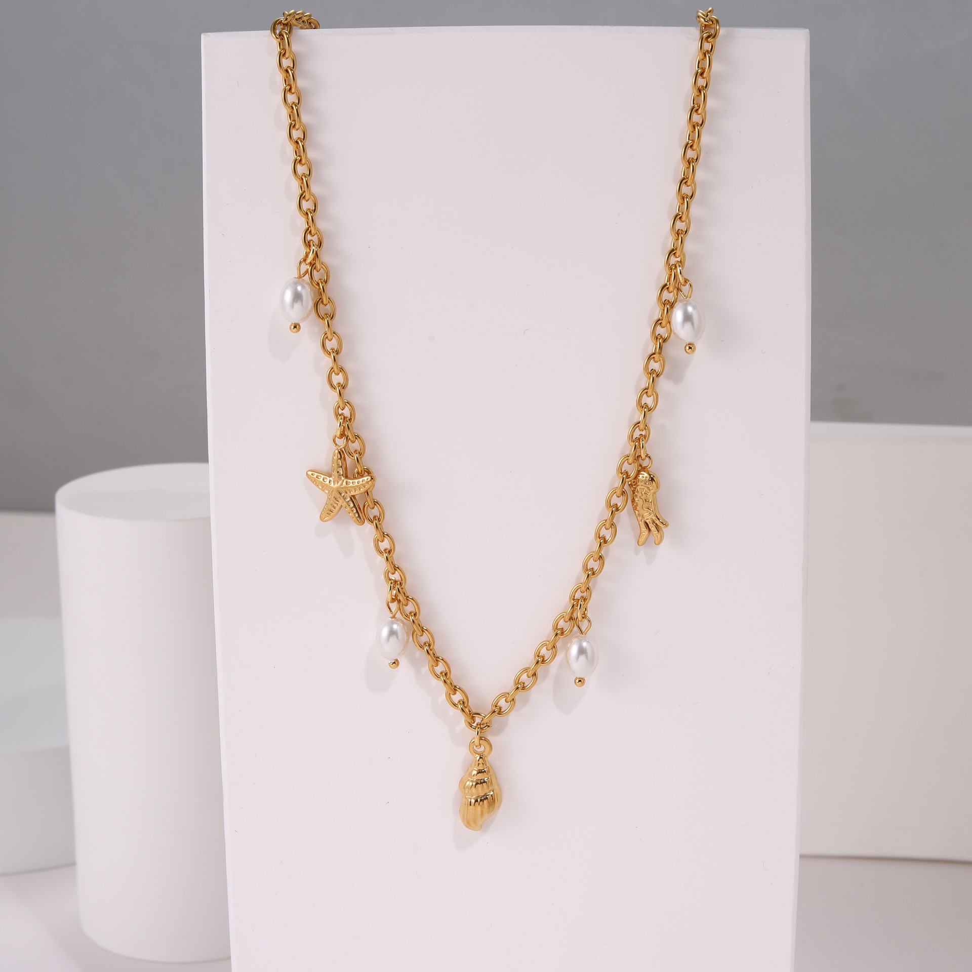 "沙滩防水首饰不锈钢18k镀金海洋生物吊坠项链"