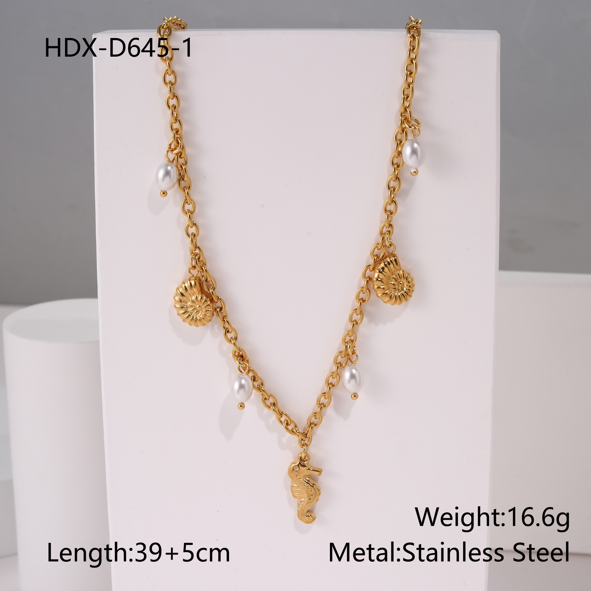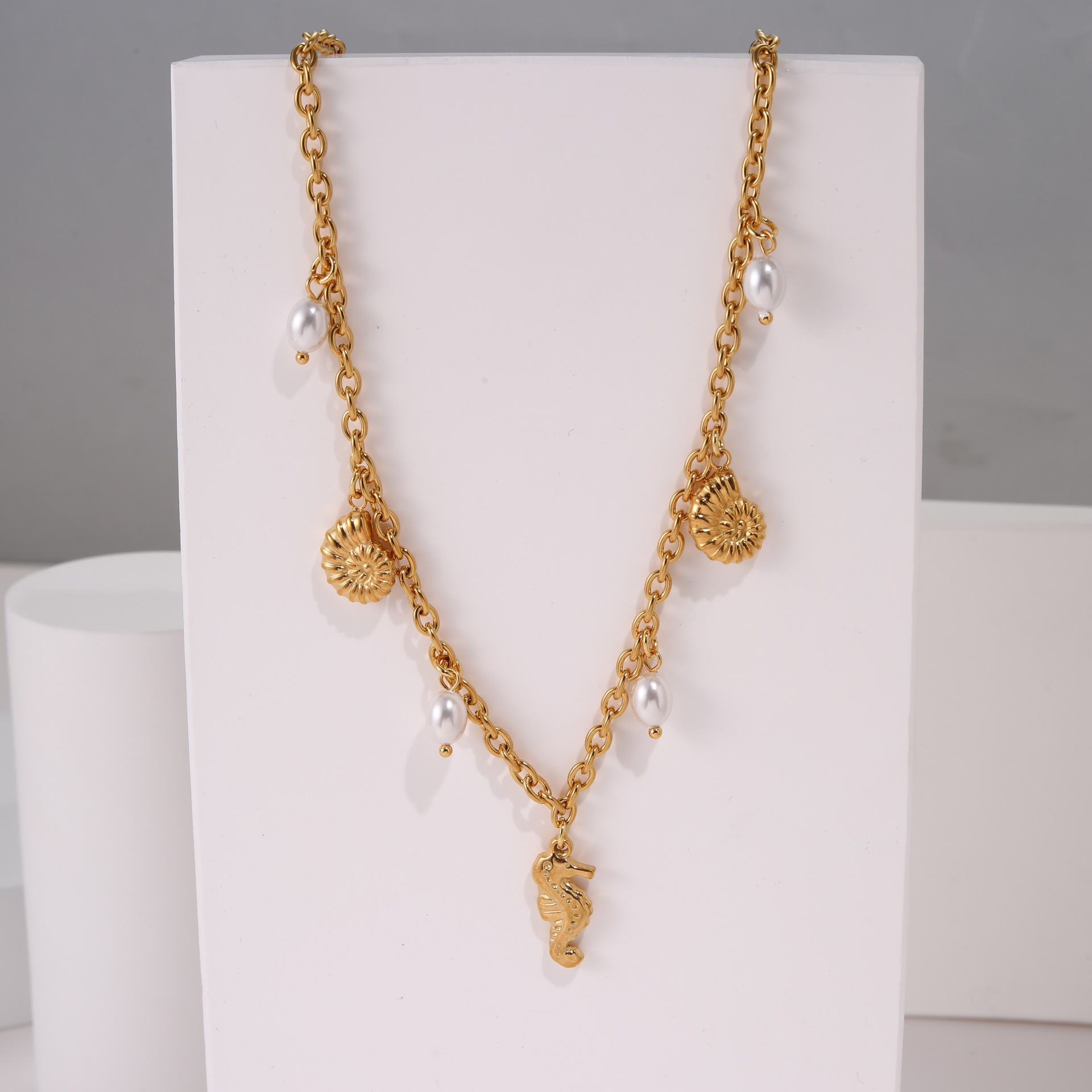 沙滩防水首饰不锈钢18k镀金海洋生物吊坠项链