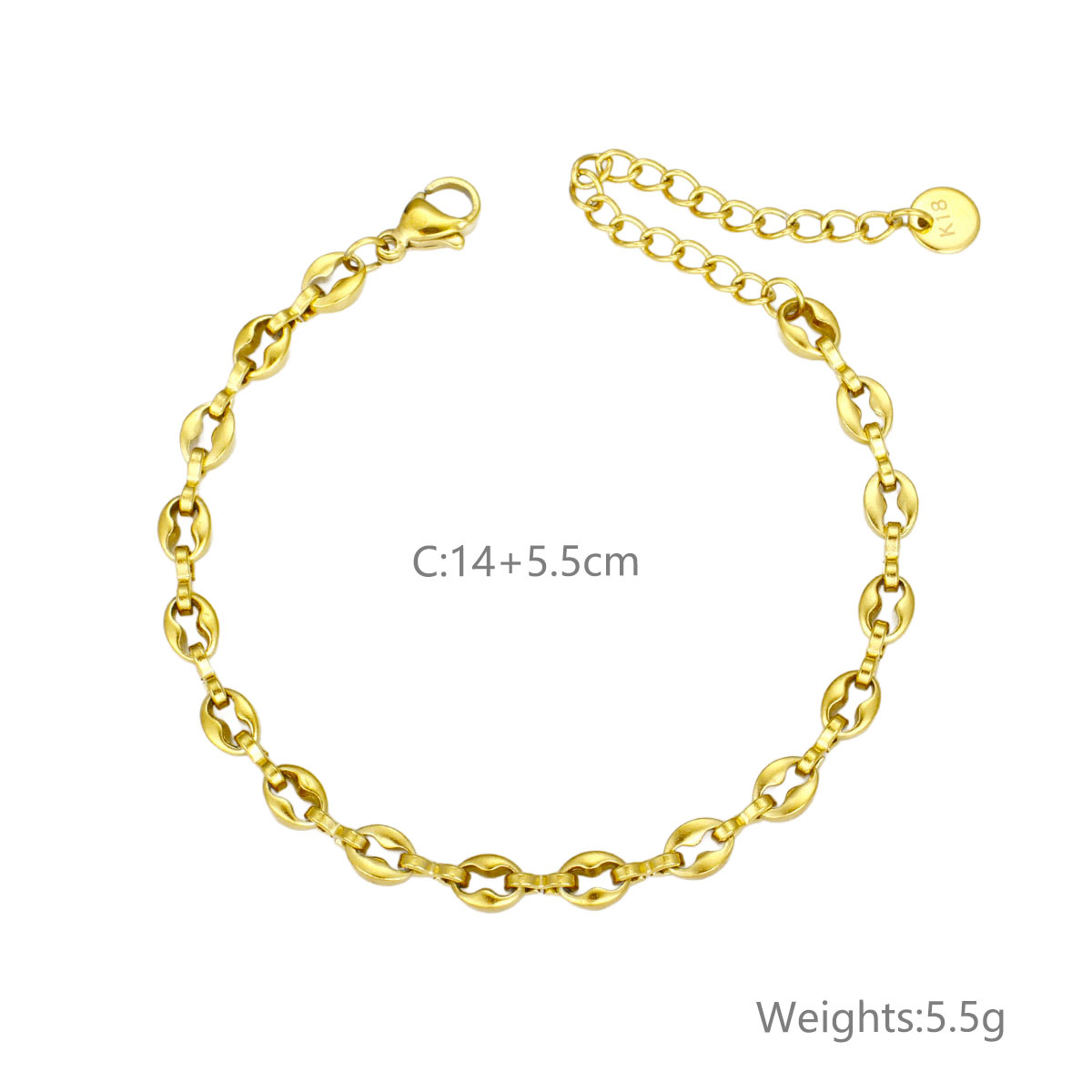 "水晶镶嵌首饰 18K PVD镀金不规则纹理防水手镯"