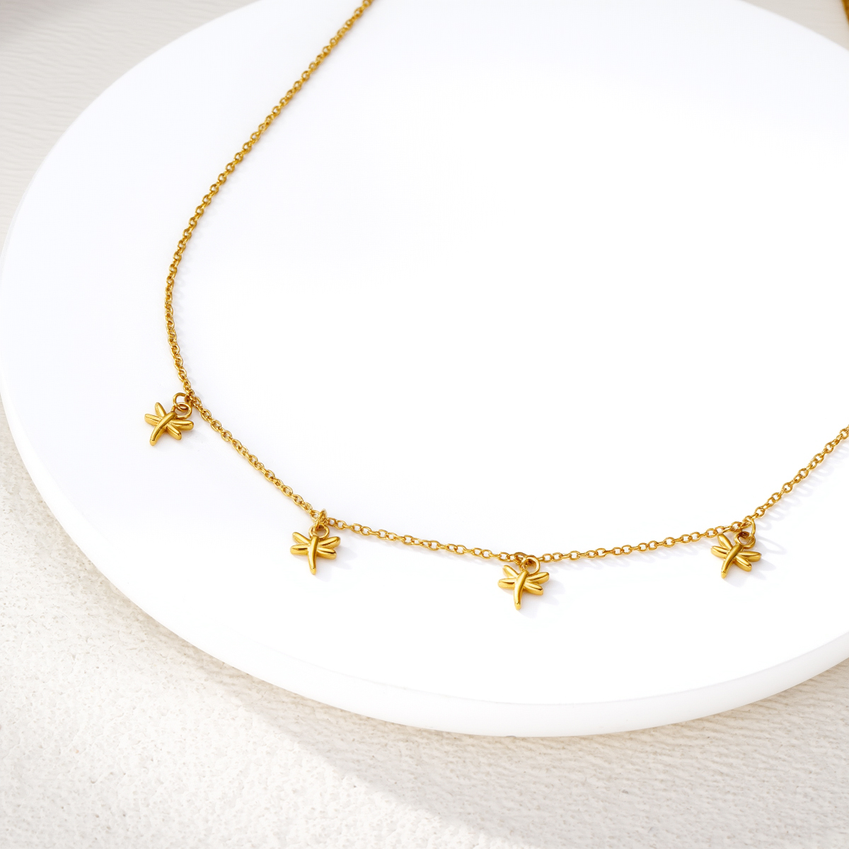 "女士时尚项链带蜻蜓和几何图案"