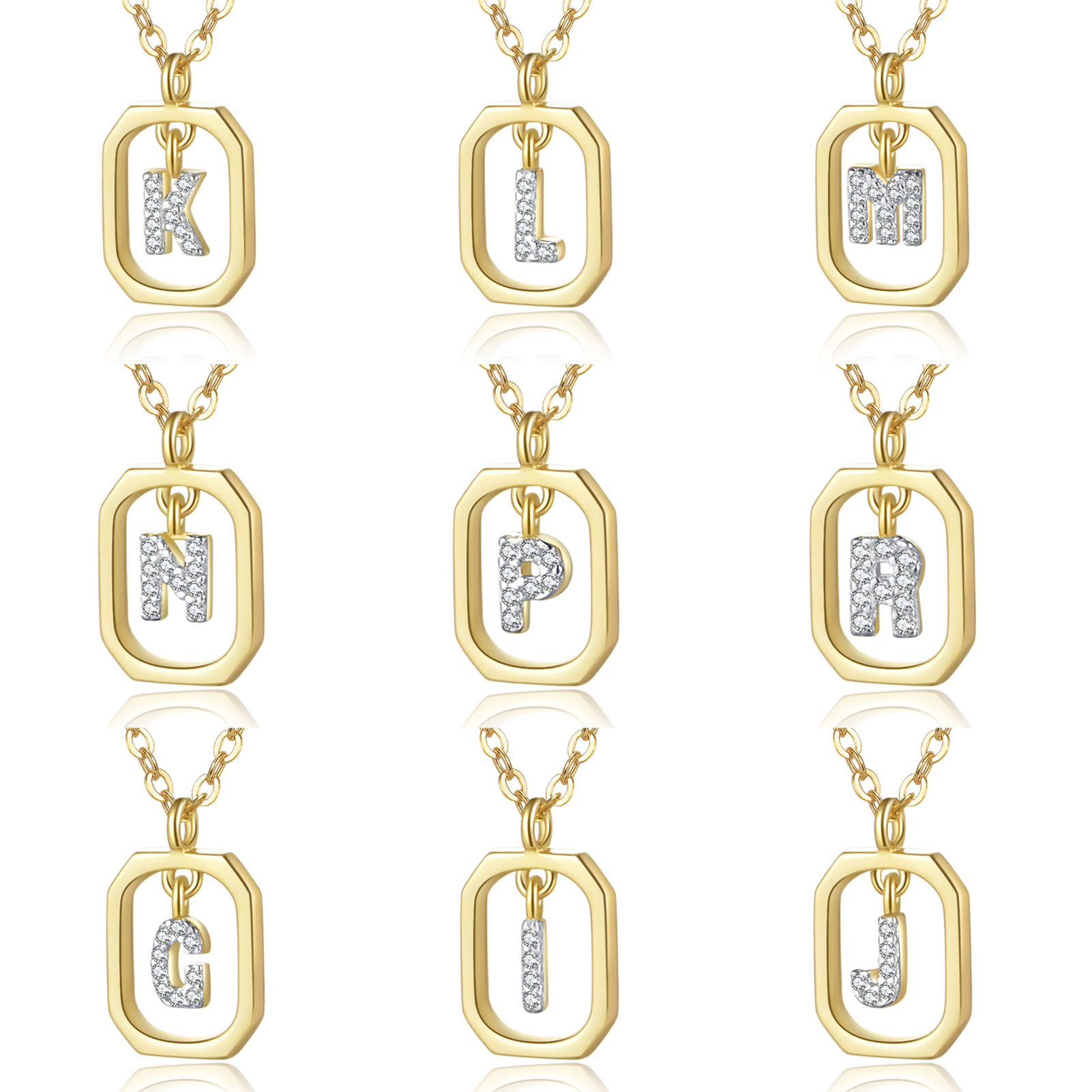 925 纯银长方形锆石字母项链