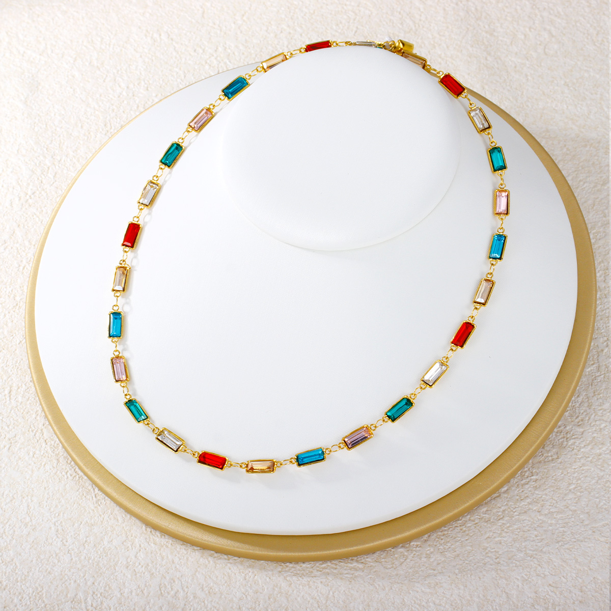 "心形圆形水滴形彩色锆石不锈钢项链"