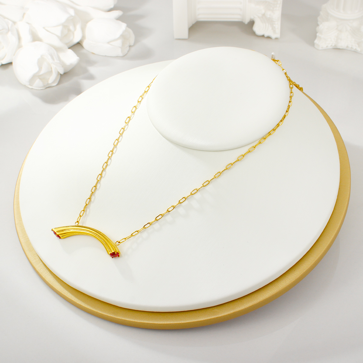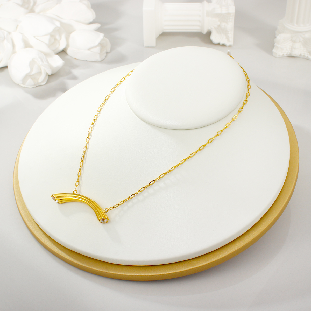 "时尚18K镀金不锈钢锆石弧形吊坠"