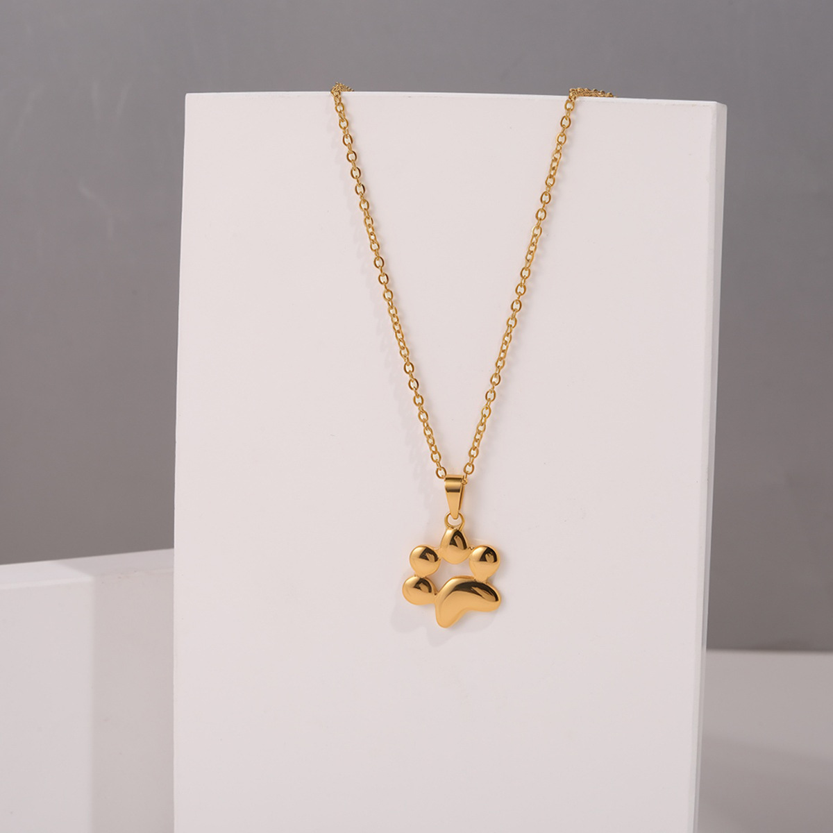 个性化不锈钢可爱宠物名字刻字狗爪印吊坠项链